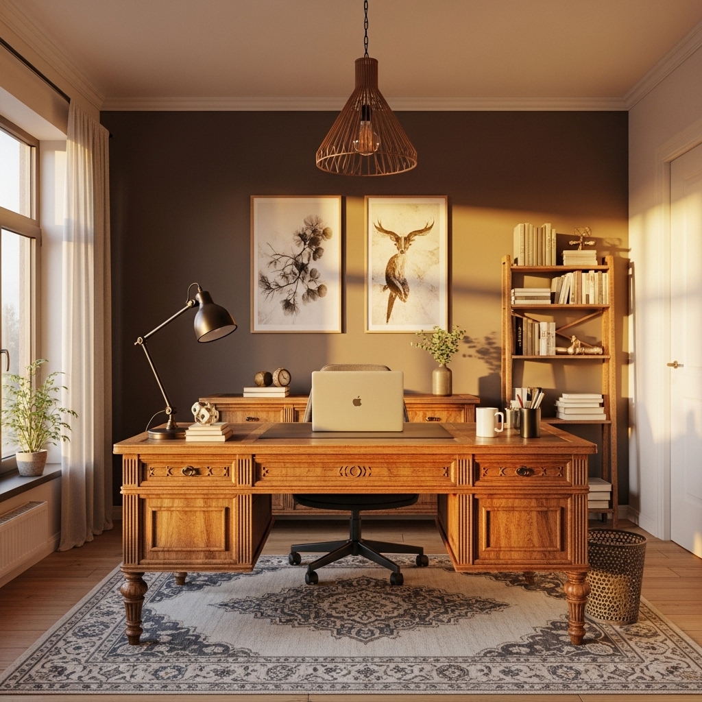 Choose a vintage desk as your workspace centerpiece for instant character and charm. Look for pieces with interesting details, warm wood tones, or unique shapes that speak to you. A vintage desk adds history and soul to your space that new furniture often lacks. Style it with both functional items and a few decorative pieces that inspire you. Position it to face the room or a window rather than a blank wall to create a more inviting setup that feels open and creative rather than confined. Choose a vintage desk as your centerpiece for instant character and workspace charm.