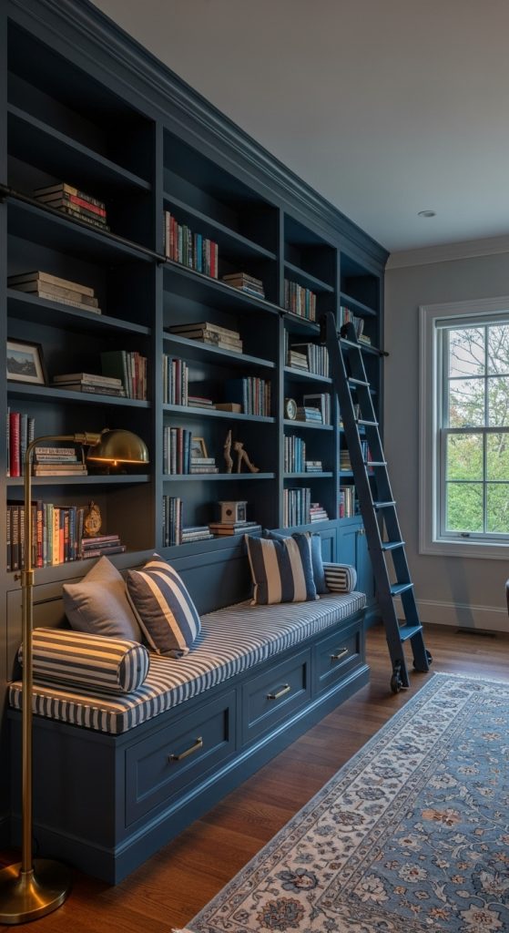 For the ultimate home library, invest in classic floor-to-ceiling built-ins. This book self idea maximizes storage and creates a powerful, elegant statement. Painting the shelves a dark, dramatic color like navy or forest green adds depth and coziness. Incorporating a built-in window seat or reading bench at the base makes the space incredibly inviting. This is a permanent solution that adds significant value to your home. It’s a dream for any serious reader, creating a room that feels like a personal sanctuary.