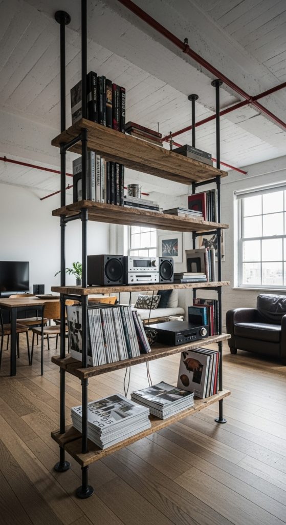Add an urban, loft-like feel to your space with an industrial pipe book self. This DIY project is surprisingly simple and incredibly sturdy. The combination of black metal and reclaimed wood creates a strong, textural look that is both modern and rustic. This type of book self works beautifully as a room divider in an open-concept area, defining the space without blocking light. It’s perfect for displaying a mix of books and decorative objects, adding a touch of gritty, creative energy to your home.