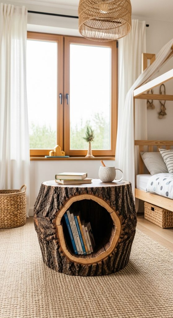 Bring a touch of the forest indoors with a natural tree stump book self. This is a truly unique and creative idea that celebrates organic forms. Source a large, sturdy stump and hollow out the center to create a niche for books. You can leave it raw for a rustic feel or sand and seal it for a smoother look. This book self idea is a wonderful conversation starter and is perfect for a nature-inspired room, a child’s bedroom, or a cozy cabin. It’s a functional piece of art that grounds your space in nature.
