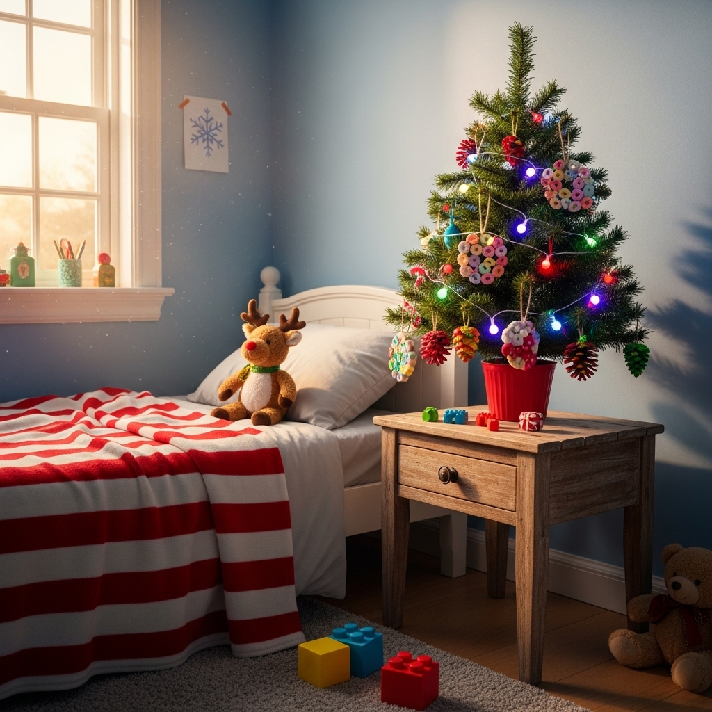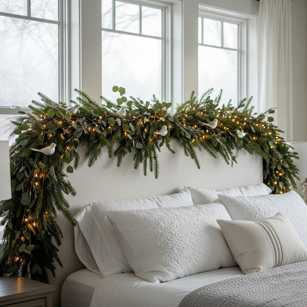 Transform your bedroom into a peaceful winter retreat. Drape a simple garland across your headboard and weave in fairy lights. Add a few natural elements like pinecones or bird ornaments. This enchanting Christmas room decor creates a calming, festive sanctuary that makes mornings feel truly magical.