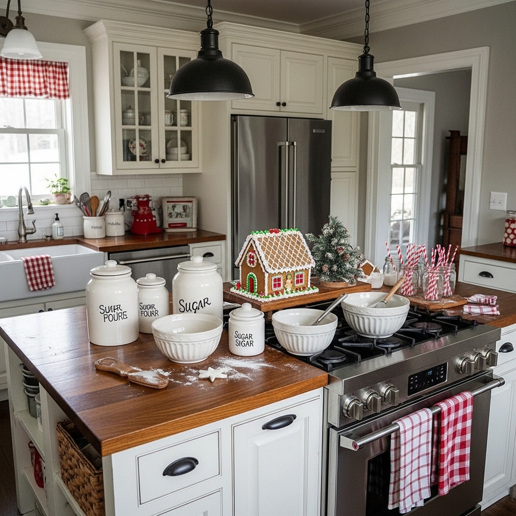 Make your kitchen the heart of holiday activities. Create a festive baking station with gingerbread houses and holiday-themed kitchen linens. Display cookie cutters and festive mugs. This functional Christmas room decor brings warmth and cheer to your busiest holiday space.