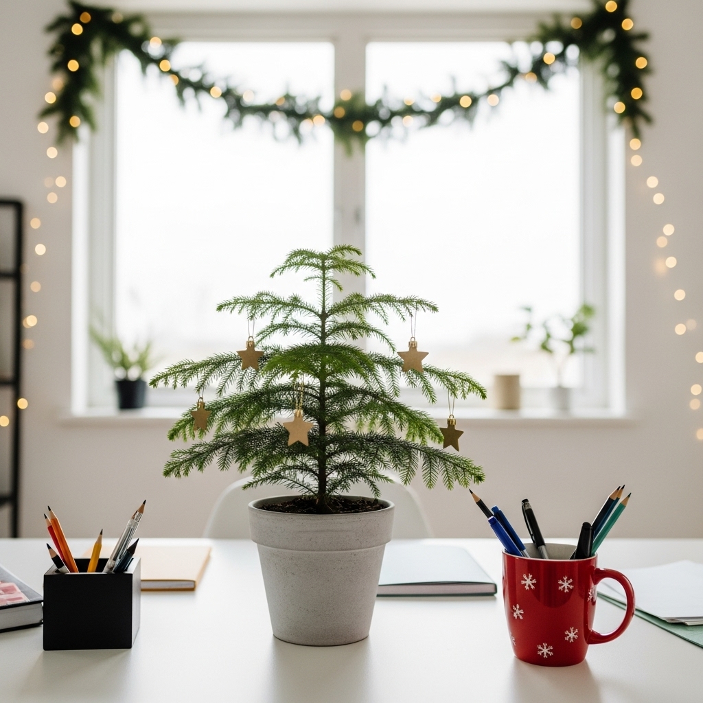Keep your workspace both festive and functional. A small, decorated tabletop tree and holiday-themed desk accessories add cheer without clutter. A simple garland maintains the professional feel. This practical Christmas room decor helps you stay productive while enjoying the season.