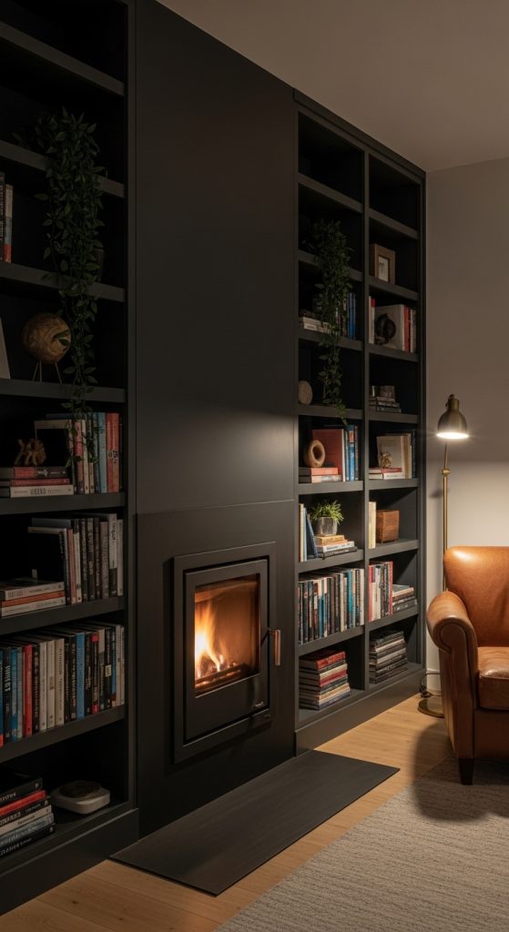 Combine form and function by building floor-to-ceiling shelves around your modern farmhouse fireplace. This design maximizes storage and display space, making it ideal for a family room or home office. Paint the built-ins a dark, dramatic color for a modern feel, or keep them white to match the walls for a brighter look. This creates a custom, high-end feature that organizes your belongings beautifully while framing the fireplace as the hero. It’s the ultimate solution for a book lover, turning the fireplace into the heart of a personal library.