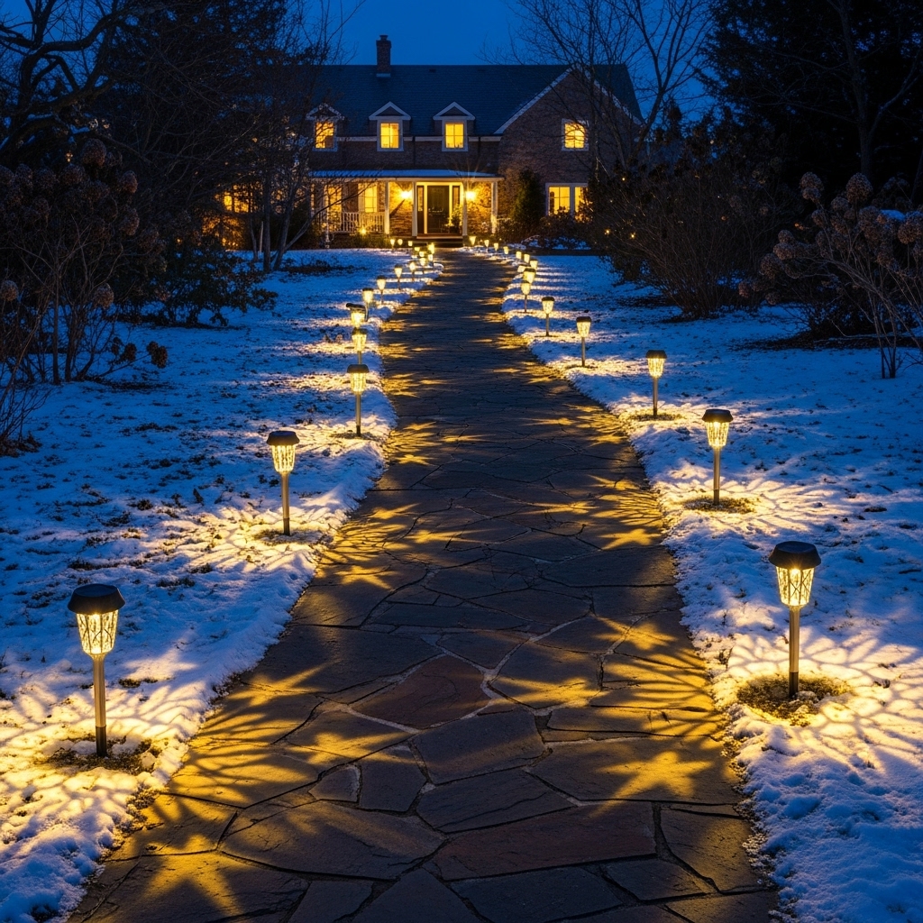 Guide guests safely while adding festive charm with lighted pathway markers. Choose solar-powered stakes for easy installation without worrying about cords. Space them evenly for a rhythmic, welcoming effect. This practical outdoor Christmas lights solution combines safety with beauty, making your walkway feel intentional and magical after dark.