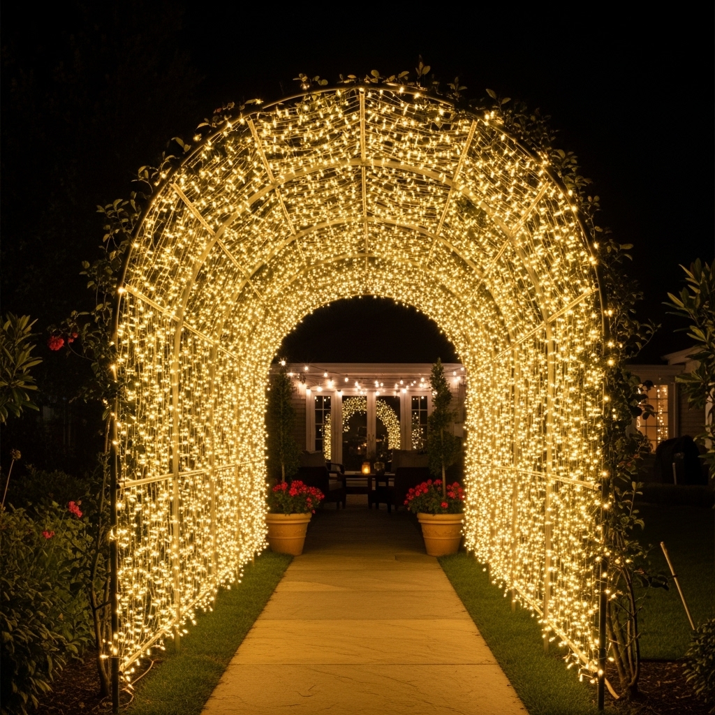 Turn garden structures into brilliant focal points. Completely wrap arbors, pergolas, or trellises with weatherproof lights for maximum impact. This transformative outdoor Christmas lights approach creates stunning portals in your landscape and makes ordinary structures extraordinary during the holiday season.