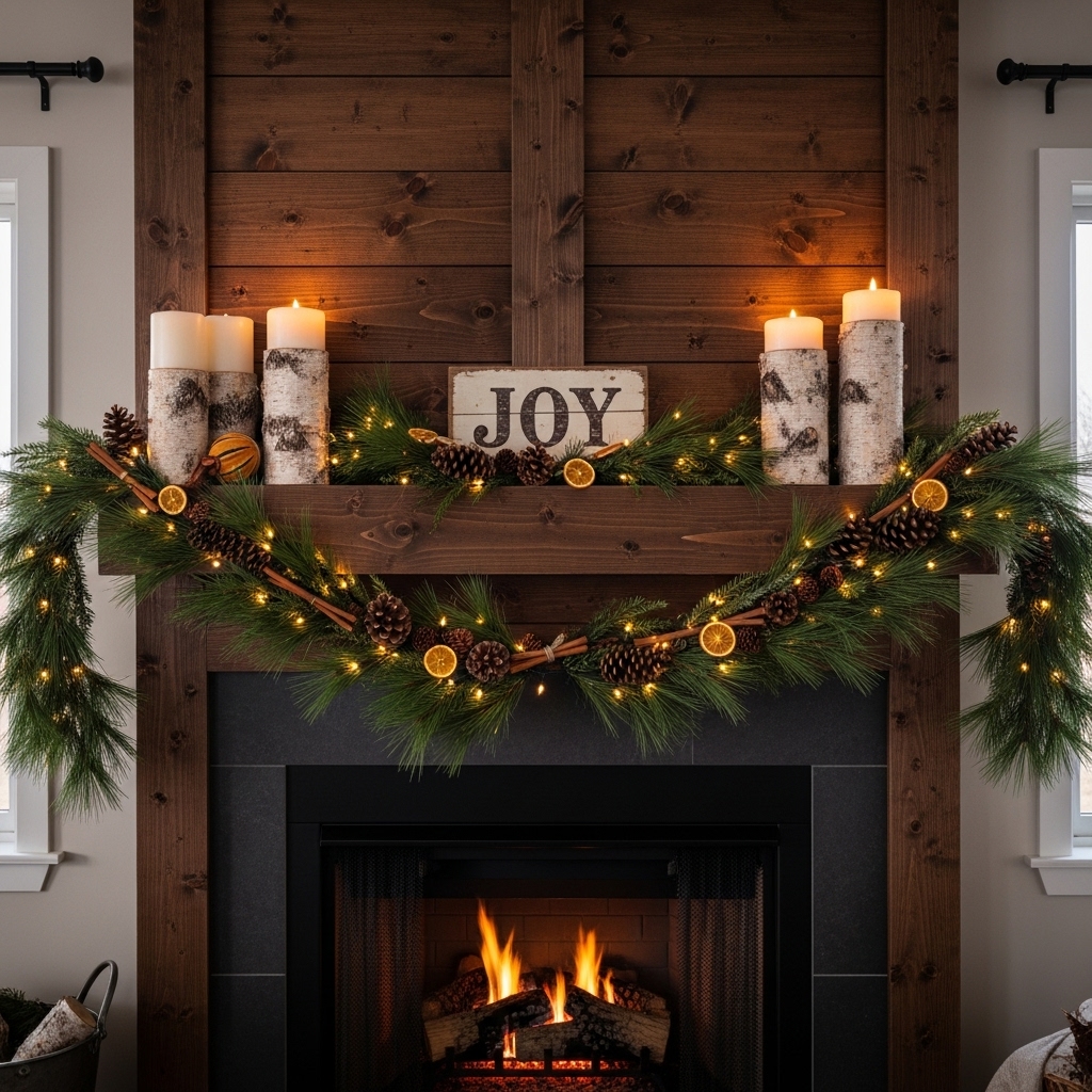 Create a stunning focal point with a woodland-inspired mantel display. Start with a fresh garland of cedar or pine as your base. Weave in natural elements like pinecones and foraged twigs. Add warmth with battery-operated fairy lights and the rich scent of cinnamon. Use birch logs as simple candleholders or bookends. This rustic Christmas decor idea brings the serene feeling of a winter forest right into your living room. It’s a timeless look that welcomes family and friends with natural warmth.