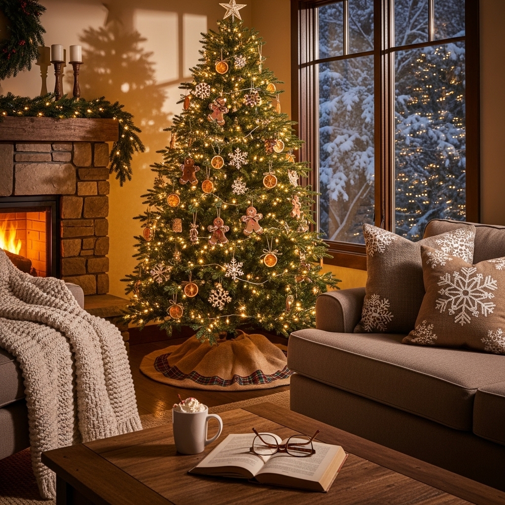 Embrace nature’s beauty with a fresh tree decorated in a purely rustic theme. Choose a real tree for its authentic scent and imperfect shape. Instead of shiny baubles, opt for handmade and natural ornaments. String popcorn and cranberries, hang dried citrus slices, and use wooden figurines. A simple burlap or plaid tree skirt completes the look. This rustic Christmas decor approach is perfect for a family project, creating a tree that tells a story with every homemade ornament.
