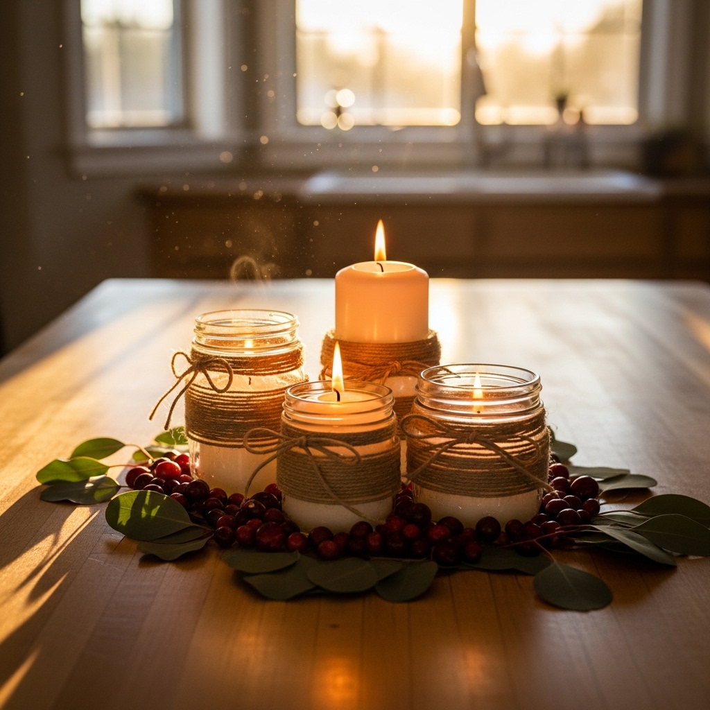 Set a beautiful rustic table with a handmade burlap runner. Burlap provides a wonderful, neutral texture that lets other elements shine. Create a simple centerpiece by laying a fresh garland of boxwood or cedar down the middle. Tuck in sprigs of winterberries or holly for a touch of red. This rustic Christmas decor idea is both affordable and elegant. It creates a warm, inviting tablescape that encourages long, memorable meals with loved ones.