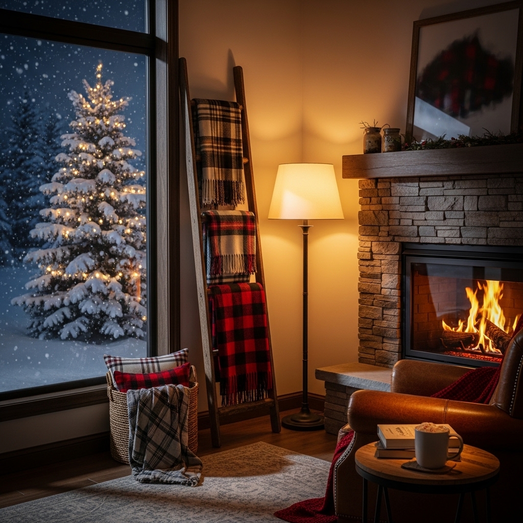 Combine style and function with a blanket ladder. A simple, wooden ladder leaned against a wall becomes a beautiful display for your coziest throws. Choose blankets in classic rustic patterns like buffalo check or plaid. This rustic Christmas decor idea not only looks festive but also encourages everyone to get cozy. It’s a practical way to store extra blankets for chilly nights, adding layers of texture and warmth to your living space.
