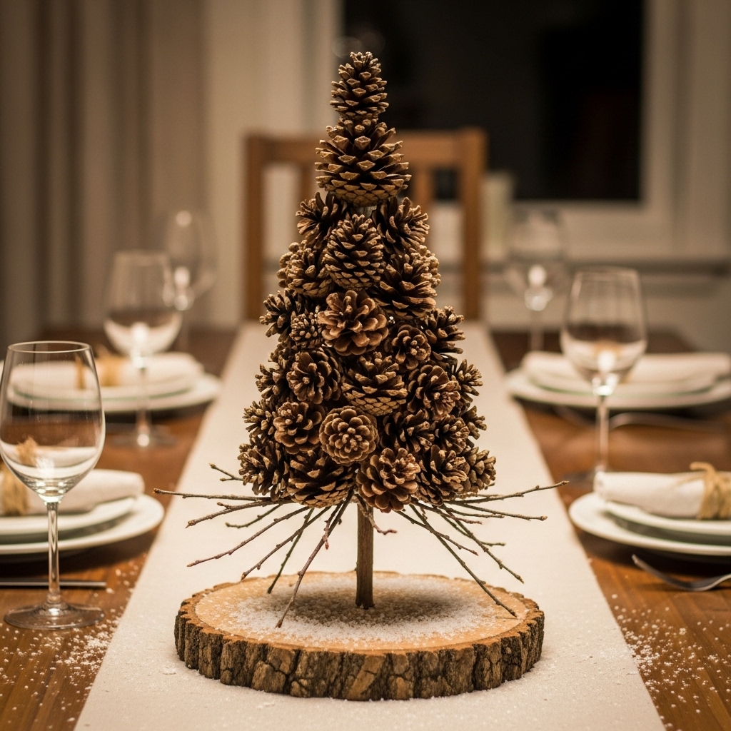Get creative with a pinecone and twig tree. This is a fun, free craft that brings the outdoors in. Gather pinecones of different sizes from your yard. Glue them together in a tiered shape to form a tree. Use a sturdy twig for the trunk and place it on a wood slice stand. You can leave it natural or give it a light dusting of faux snow. This unique rustic Christmas decor piece is a wonderful conversation starter and a testament to nature’s beauty.