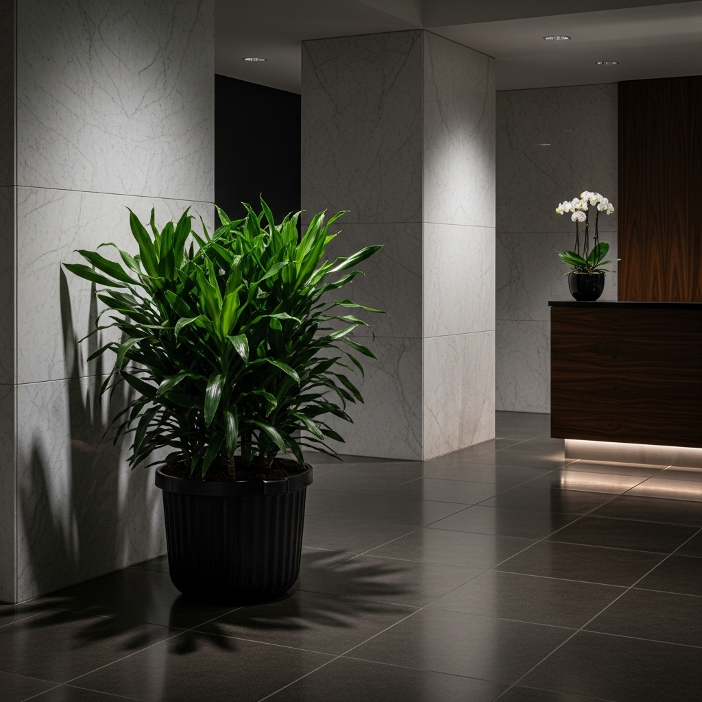 The Dracaena ‘Janet Craig’ is a workhorse in the world of low light plants indoor. It is famously tolerant of low light and irregular care, often used in office buildings. It has solid, dark green leaves and helps remove common household toxins from the air. It’s a no-fuss way to add a significant amount of lush greenery to a dim space.