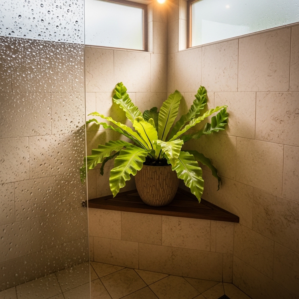 The Bird’s Nest Fern has a unique, ripple-edged frond that adds wonderful texture. It loves humidity and low to medium indirect light, making it a perfect low light plant indoor for a bathroom. Unlike other ferns, its leaves are more leathery and less prone to crisping. It creates a beautiful, structural rosette shape.