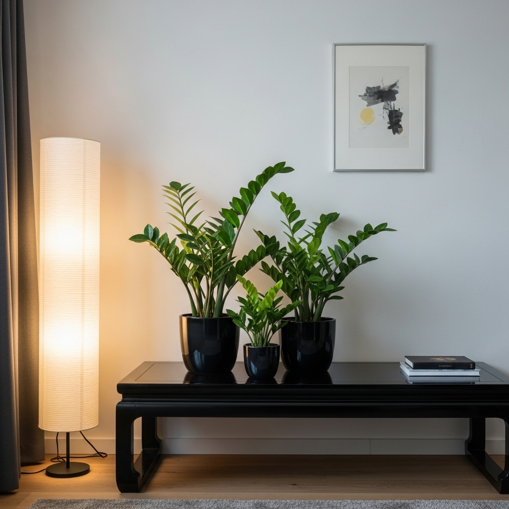 For a touch of modern zen, the ZZ Plant is unbeatable. With its waxy, dark leaves and bulbous roots that store water, it can survive weeks without attention. These bedroom plants are perfect for lower-light areas and are excellent air purifiers. Grouping them in different heights creates a cohesive, architectural display that brings a sense of order and tranquility to your space.