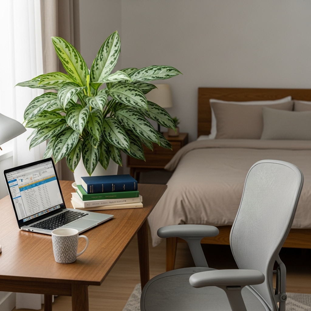 The Chinese Evergreen is a staple of low-light spaces. It comes in beautiful varieties with stunning patterns of silver, pink, or red. It is exceptionally adaptable and tells you it needs water when it slightly wilts. As one of the most reliable bedroom plants, it brings vibrant color and pattern to your desk or dresser, thriving with minimal intervention.