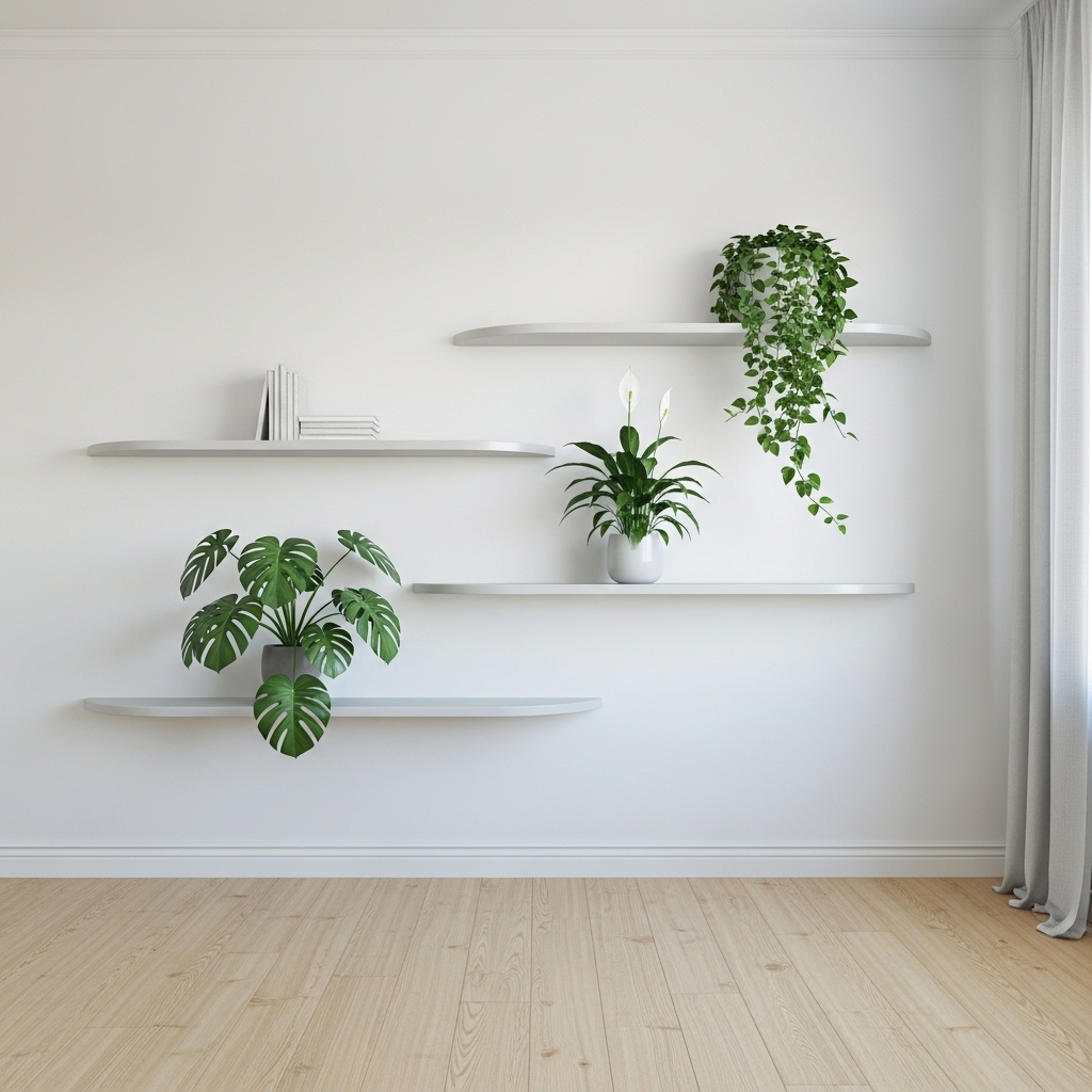Create a sense of lightness and flow with a floating cloud plant shelf arrangement. The key is to use shelves of different lengths and mount them at staggered heights. This prevents the display from feeling rigid or heavy. It allows each plant to be appreciated individually while forming a cohesive group. This plant shelf style is perfect for creating a calm, minimalist focal point in a bedroom or living area.
