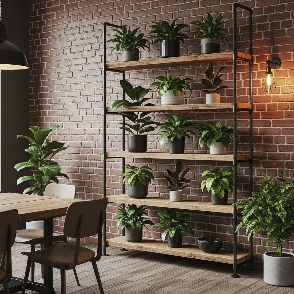 For an urban, loft-like feel, an industrial pipe plant shelf is a stunning choice. The combination of black metal and wood is both strong and warm. This is a sturdy solution for holding heavier plants. You can customize the pipe lengths and shelf distances to fit your space and plant collection perfectly. This plant shelf idea makes a powerful design statement and is a rewarding DIY project for the experienced handyperson.