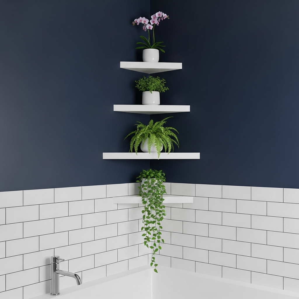 Conquer unused corner space with this clever plant shelf design. Triangular shelves are made specifically for corners, creating a sleek, built-in look. This is a fantastic way to add greenery to small rooms like bathrooms, where plants can thrive in the steam. This plant shelf trio maximizes your vertical space and turns a forgotten corner into a lush, vibrant focal point.