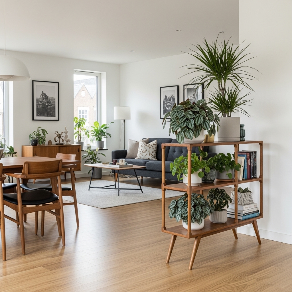 Use a freestanding plant shelf to define spaces in an open-concept home. A multi-tiered etagère adds greenery and visual separation without blocking light. This approach lets you display a large collection artfully. The open shelves maintain an airy feel. Choose a style that matches your furniture, and your plant shelf will become a key architectural element in your home’s design.