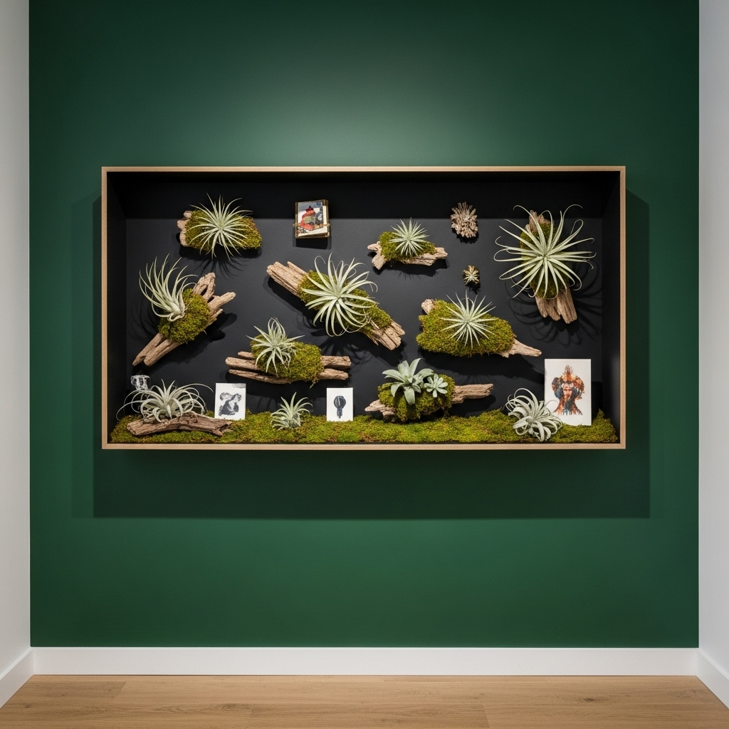 Turn a shadow box into a living art plant shelf. This idea is perfect for displaying small, low-maintenance plants like air plants and succulents. You can create miniature landscapes and change the display with the seasons. Mounted on your wall, this plant shelf becomes a deeply personal and conversation-starting piece of art that celebrates your love for nature and creativity.