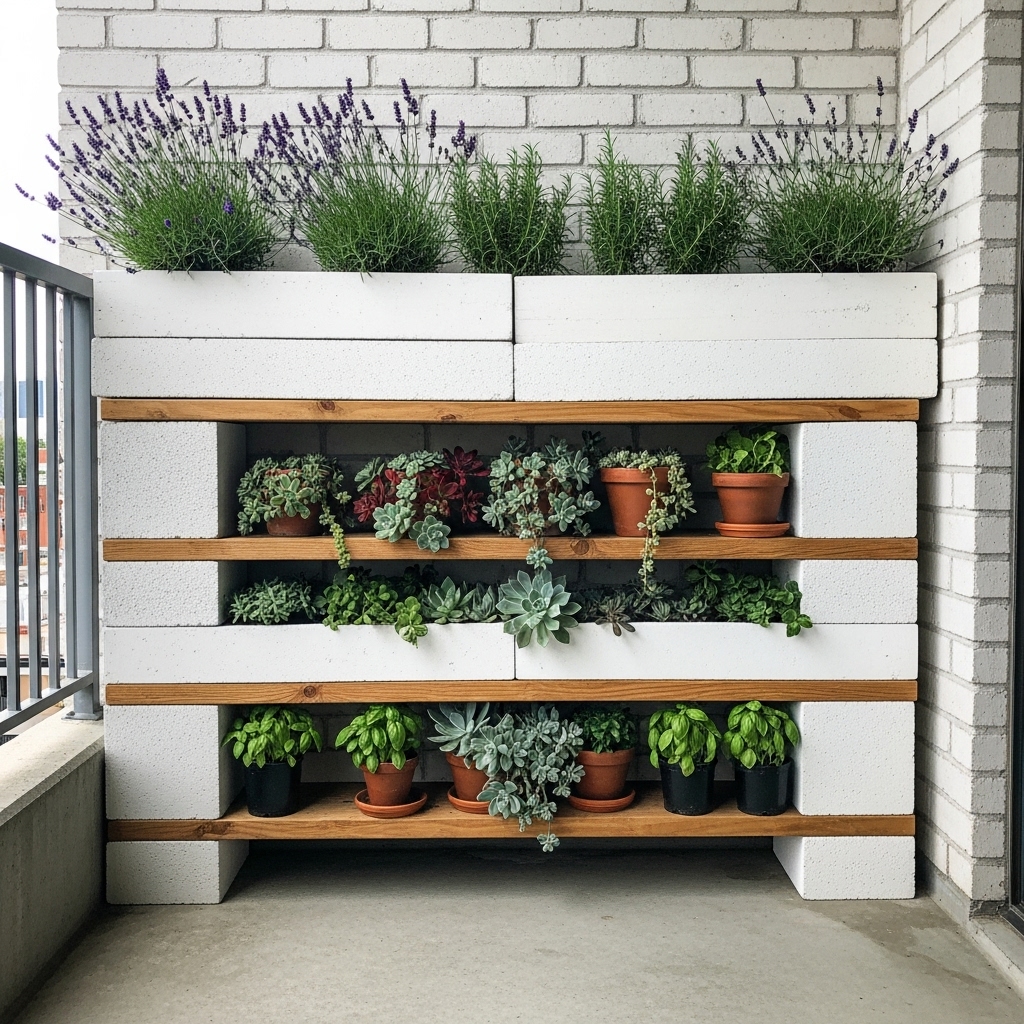 Embrace a raw, urban aesthetic with a cinderblock plant shelf. This is an incredibly sturdy, affordable, and easy DIY project. The clean lines and industrial materials create a modern, sculptural look. It’s perfect for outdoor spaces or minimalist interiors. You can customize the height and width to fit your space, creating a powerful plant shelf that makes a bold statement.