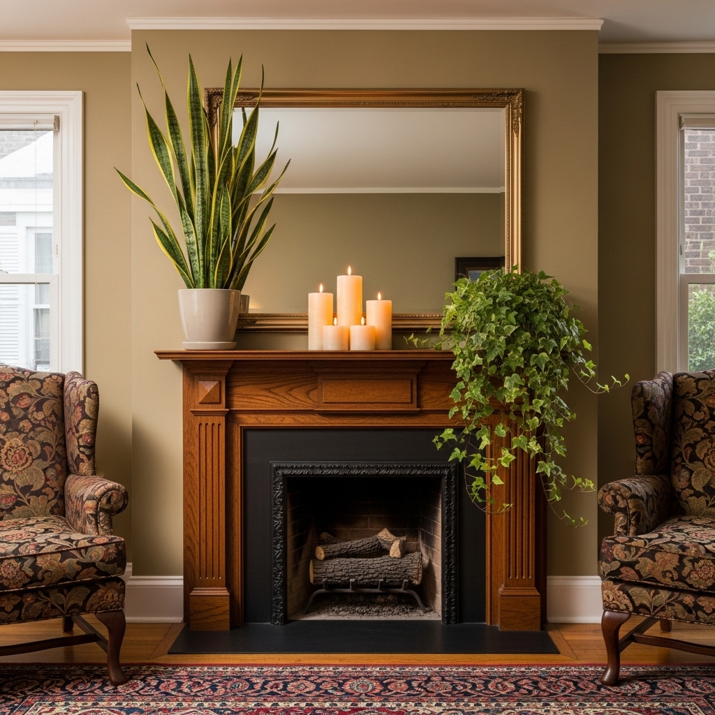 Your fireplace mantel is a prime spot for a dramatic plant shelf. When not in use, the mantle provides a perfect stage for a curated plant display. Use a mix of heights and textures to create visual interest. This draws the eye and makes your fireplace the beautiful, living heart of the room. It’s a simple way to elevate your space with a classic plant shelf.
