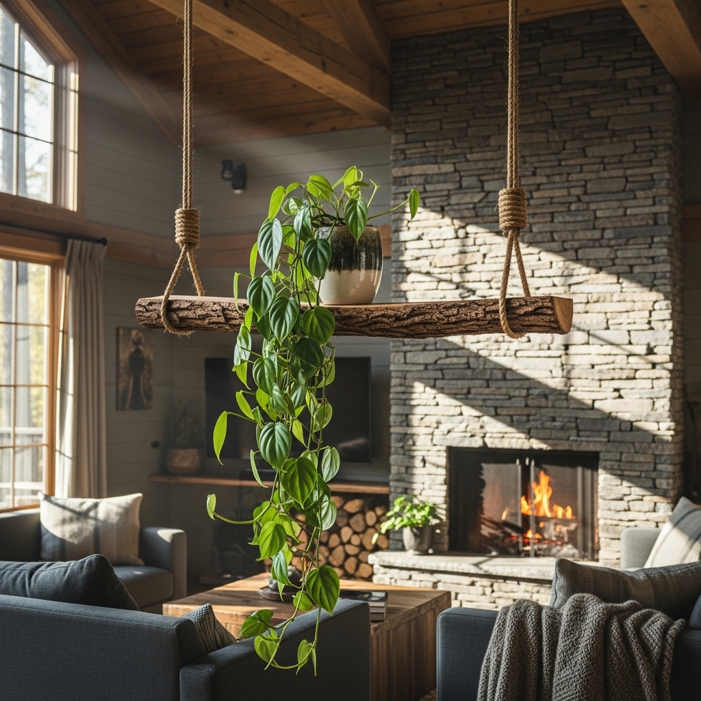 Bring the raw beauty of the outdoors inside with a branch and rope plant shelf. This DIY project celebrates natural, imperfect forms. The sturdy branch provides a strong base, while the ropes add to the rustic charm. It’s a perfect plant shelf for a cabin, porch, or any room that needs a touch of earthy, organic texture. It feels handmade and deeply connected to nature.